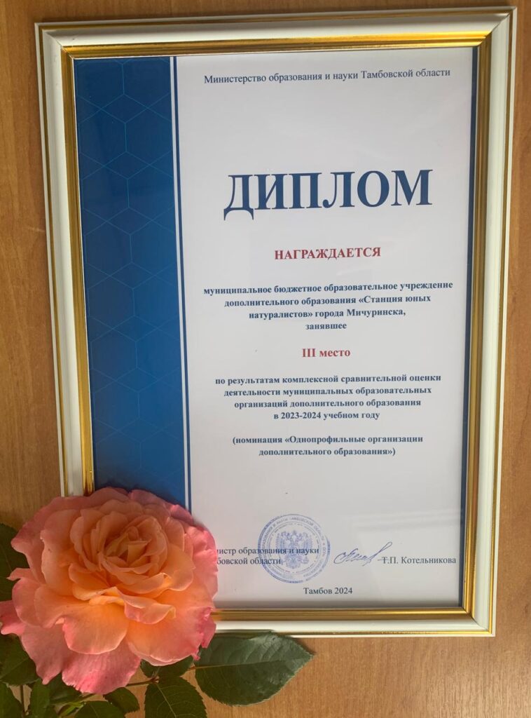Заседание завершилось награждением. По результатам комплексной сравнительной оценки деятельности муниципальных образовательных организаций дополнительного образования в 2023-2024 учебном году в номинации «Однопрофильные организации дополнительного образования» МБОУ ДО «Станция юных натуралистов» была награждена дипломом за 3 место.
